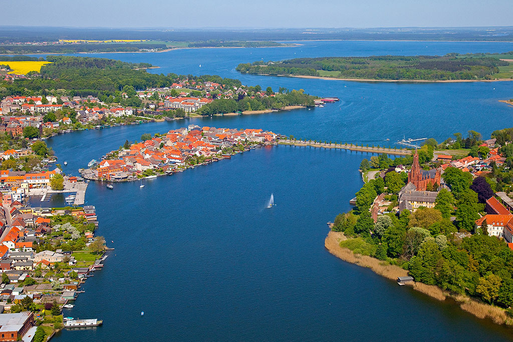 Dort läd die Wassernähe und die zahlreichen Wasserstraßen zum Bummeln und Verweilen, in einem der zahlreichen Restaurants, ein. Ein absolutes Highlight ist die Drehbrücke, die zu jeder vollen Stunde öffnet, um den Schiffsverkehr passieren zu lassen. Außerdem sind das historische Rathaus, der Erddamm, die imposante Klosteranlage direkt am Malchower See und die Stadtkirche einen Besuch wert.